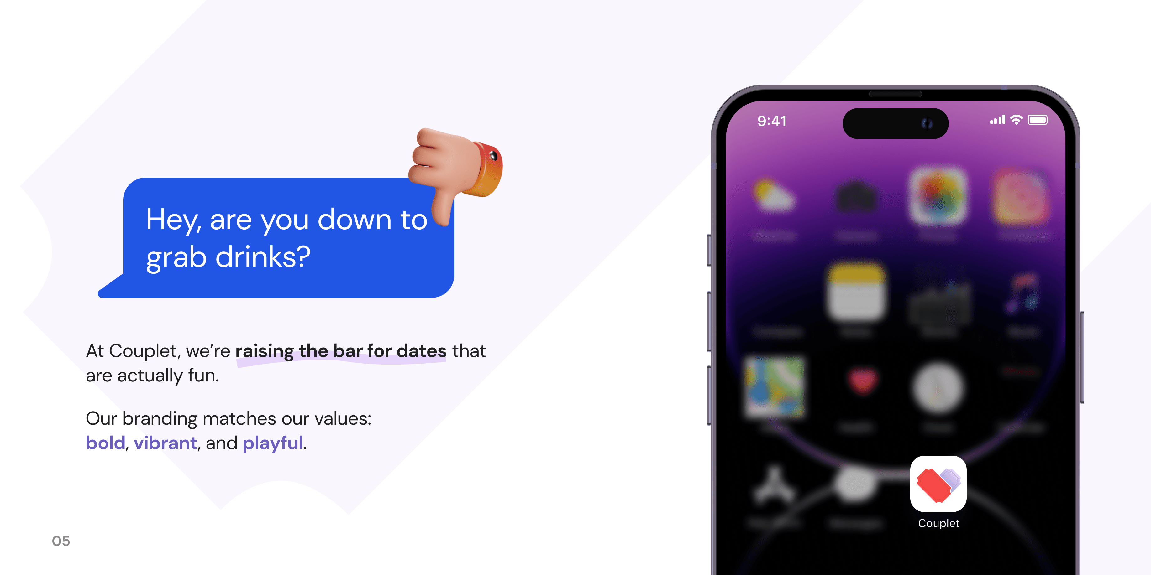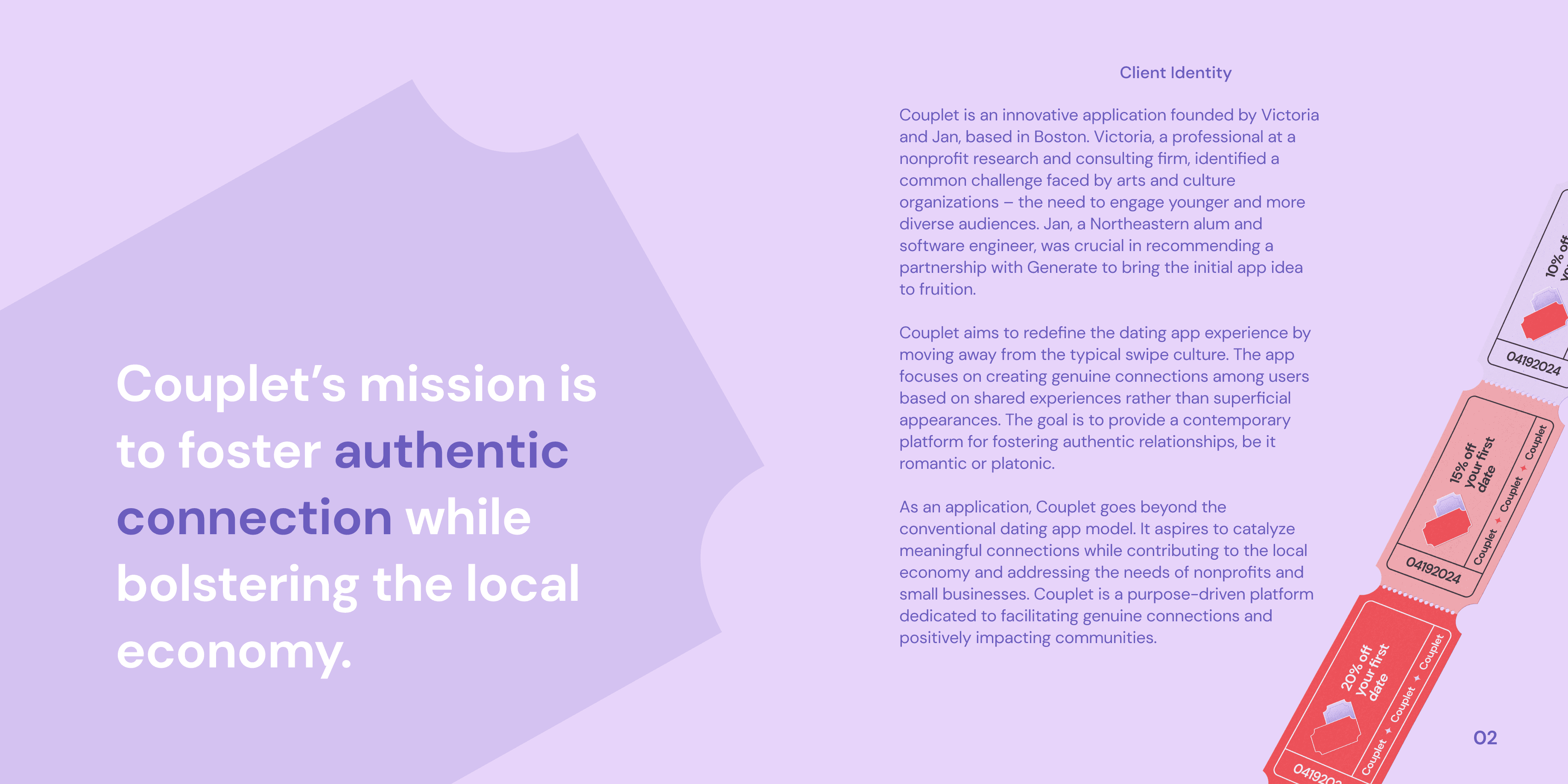 Couplet is an innovative dating app founded by Victoria and Jan, based in Boston. Victoria, a nonprofit research and consulting professional, saw a common challenge faced by arts and culture organizations—the struggle to engage younger and more diverse audiences. Jan, a software engineer, recommended a partnership with our team to bring the initial app idea to life.