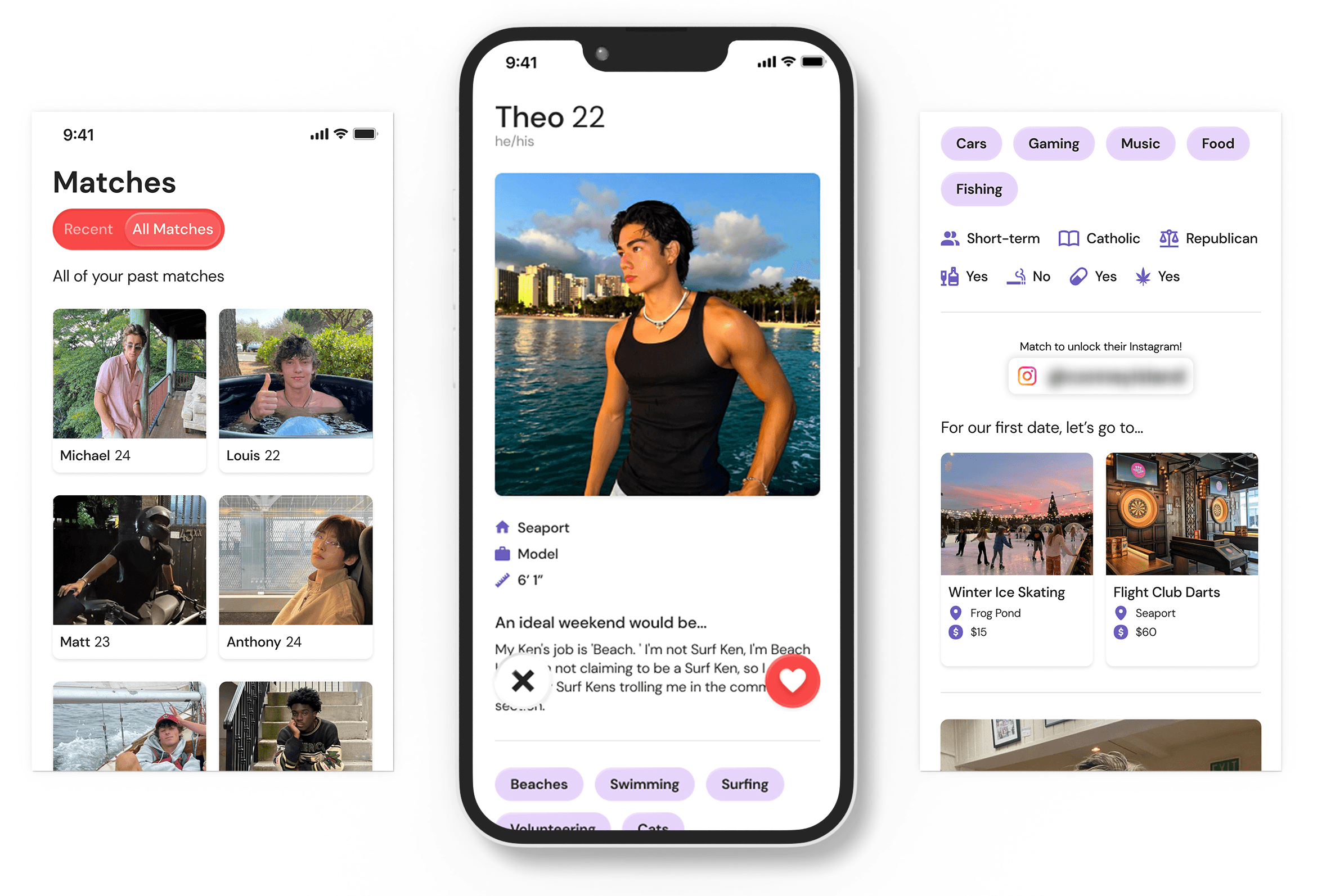 - Shared Event Interests: To further enhance the connection, the app also shows users any events they both like or have in common, making it easier for them to plan their date around something they both enjoy.